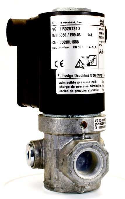 Газовый электромагнитный клапан Kromschroder VG 15R02NT31D (85205030) используется в качестве запорного устройства в системах газоснабжения горелок и других газосжигающих приборов, безопасно и надежно перекрывая поток газа/воздуха. Рассчитан на тяжелые режимы эксплуатации при работе теплогенерирующих установок. Максимальное давление газообразной среды – 200 мбар.